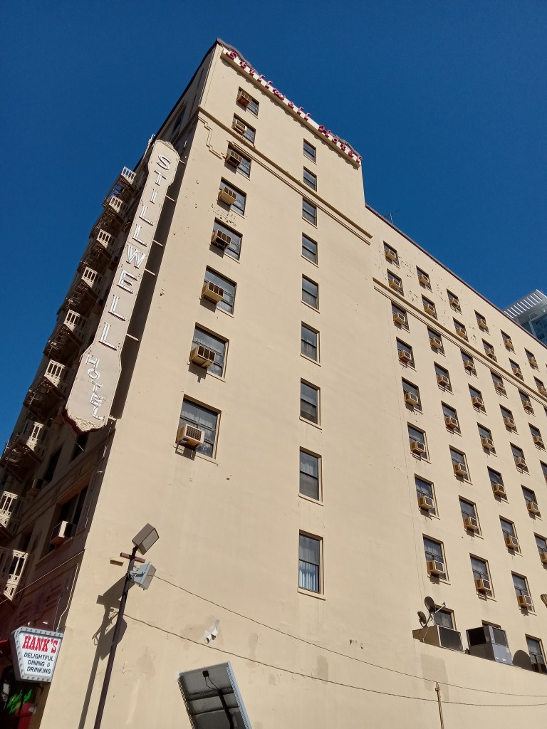 The place I was really interested in tracking down was the Stillwell Hotel, on the corner of 8th and Grand, where’d I’d lived my last two years in Los Angeles, dreaming dreams so big all they did was send me over the edge. I’d paid five-fifty a month the first year, and six-fifty the second, for a room that included room service once a week, with an Indian restaurant on the ground floor, as well as the famous Hank’s Bar, which I would descend to nightly in the elevator, like Batman sliding down the pole to the Batcave. The Hotel was still there. Hank’s was still there. The Indian restaurant was still there, but looked like they were only open for take-out. I asked the guy at the desk if they still rented rooms on a monthly basis, but the answer was negative. Apparently, during COVID they’d tried to fill the hotel with homeless folks and the owner had put his foot down and stopped taking new residents altogether. That was a pity. There was nowhere even remotely affordable left in the city, as far as I could tell.