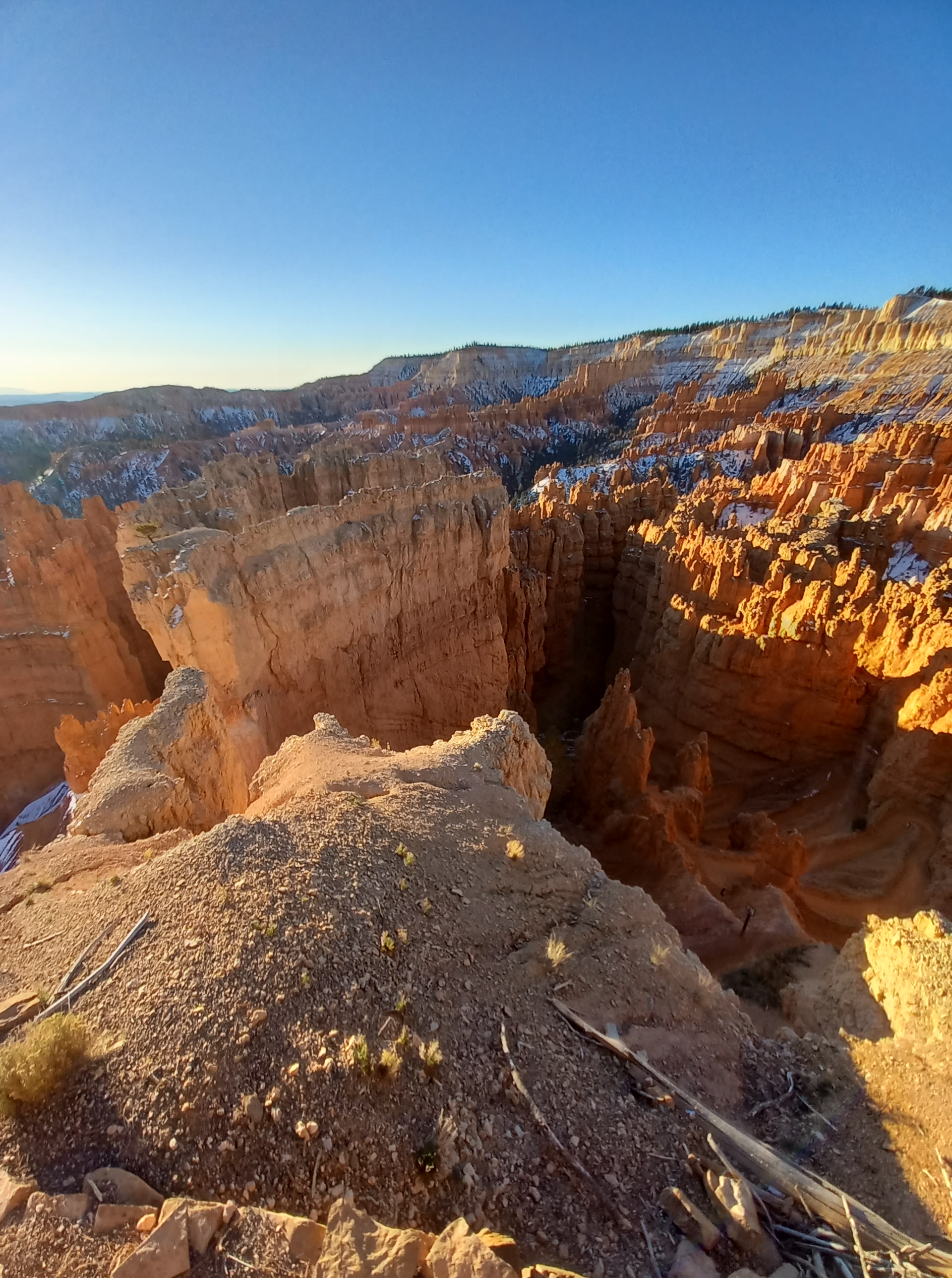 It was an hour to Bryce Canyon and the morning was cold, like winter cold. I needed to warm up the engine before I drove the car, and then use the heater for the first twenty minutes. I was on the 12, heading west. When I was close to the park, I headed south on the 63. There was no one ahead of me at the entrance, and again my National Park Pass proved gold.
