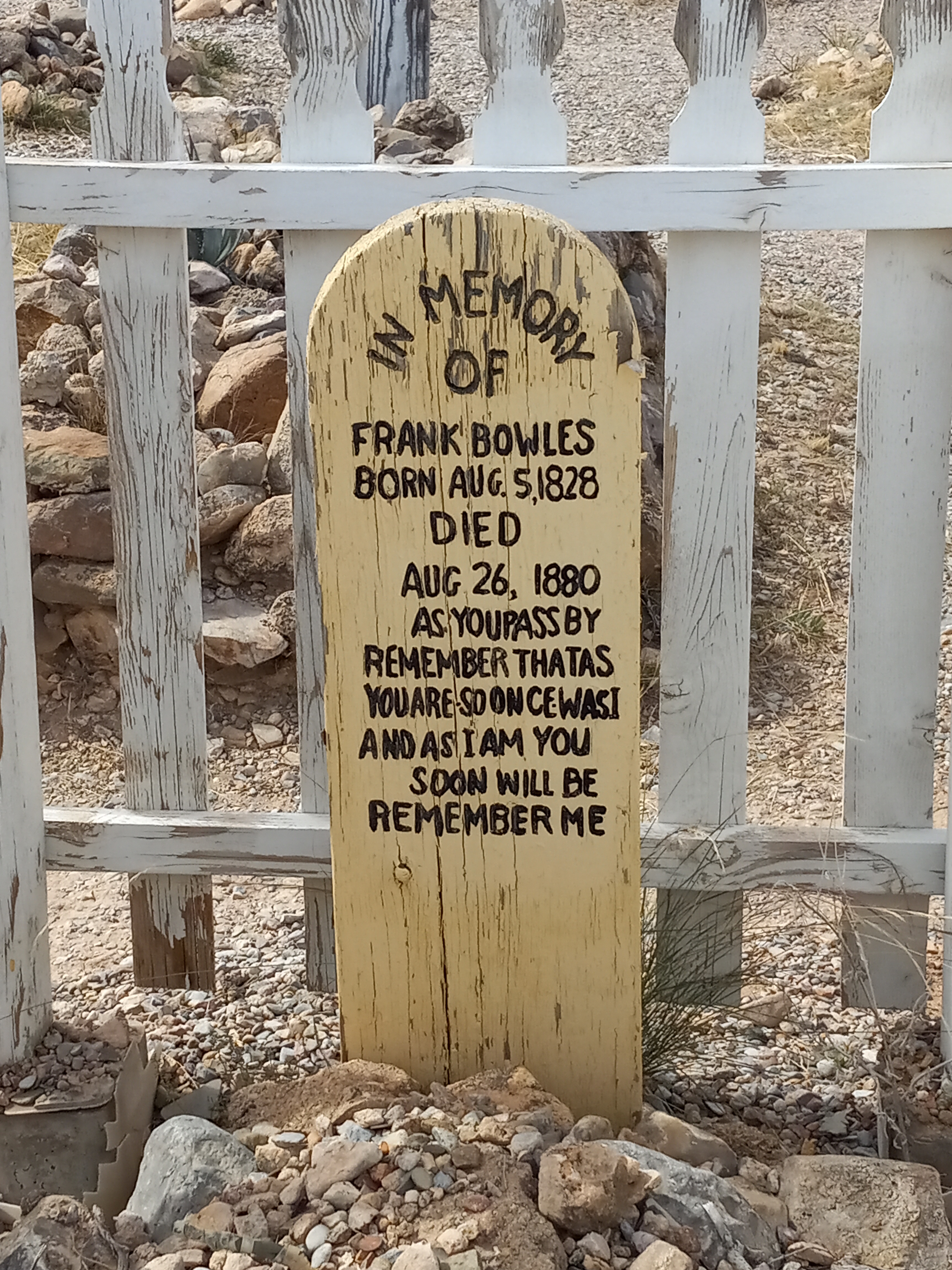 There would be activities all day long, but I’d been there for the best of it. I went to look for the car and then saw it was over four hundred miles to Joshua Tree. I wouldn’t be making it that far. On the outskirts of town was the Boothill Graveyard. When I saw they were charging an entrance fee I almost blew it off and even got in the car, but then turned back.