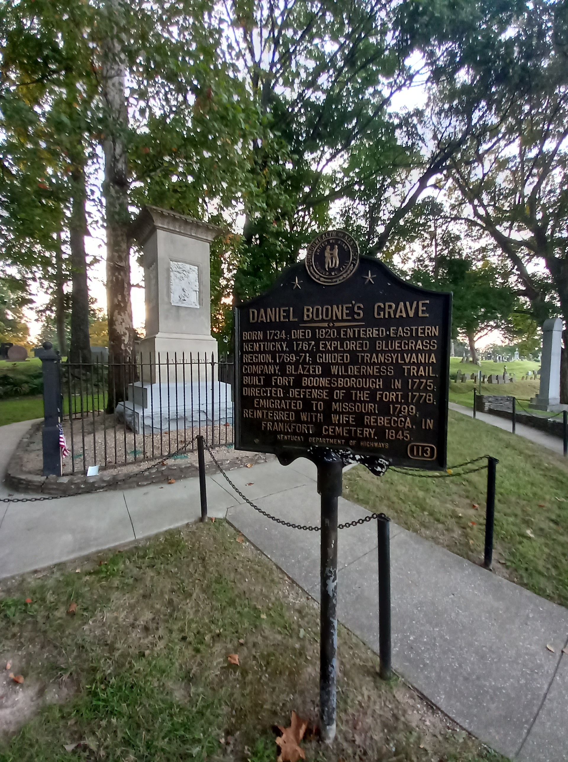 I’d seen that Daniel Boone’s grave was just an hour away, in Frankfurt, so of course I was going to head straight there in the morning. It had been a rough night at My Old Kentucky Home Campground, camped on a patch of grass, my tent behind a tree, trying not to draw any attention. At the first light of dawn, I was up and on the road.