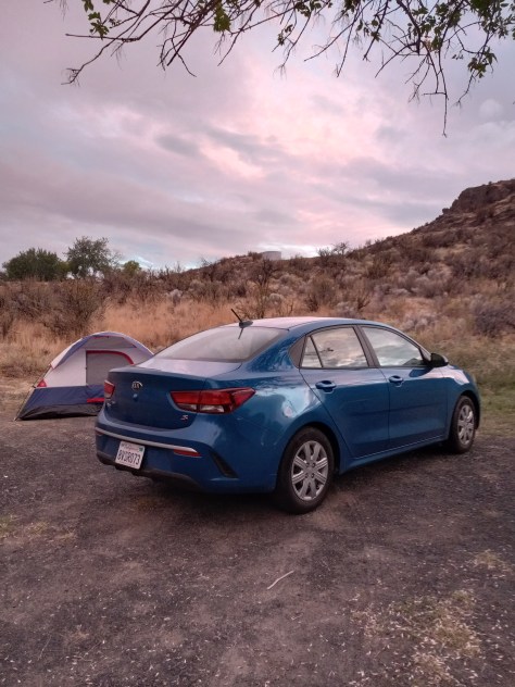 My goal that day was to make it to the Grand Coulee Dam, and it was already nearing sunset by the time I did. As had become customary, I was leaving everything to chance, hoping another campsite would roll into view once I needed it. By now, there were three of us on the journey, myself, the rental car I’d dubbed the Mountain Bluebird, and the woman from Google Maps. I’d checked to see if she had a name, and discovered it was Karen. Karen it was then.