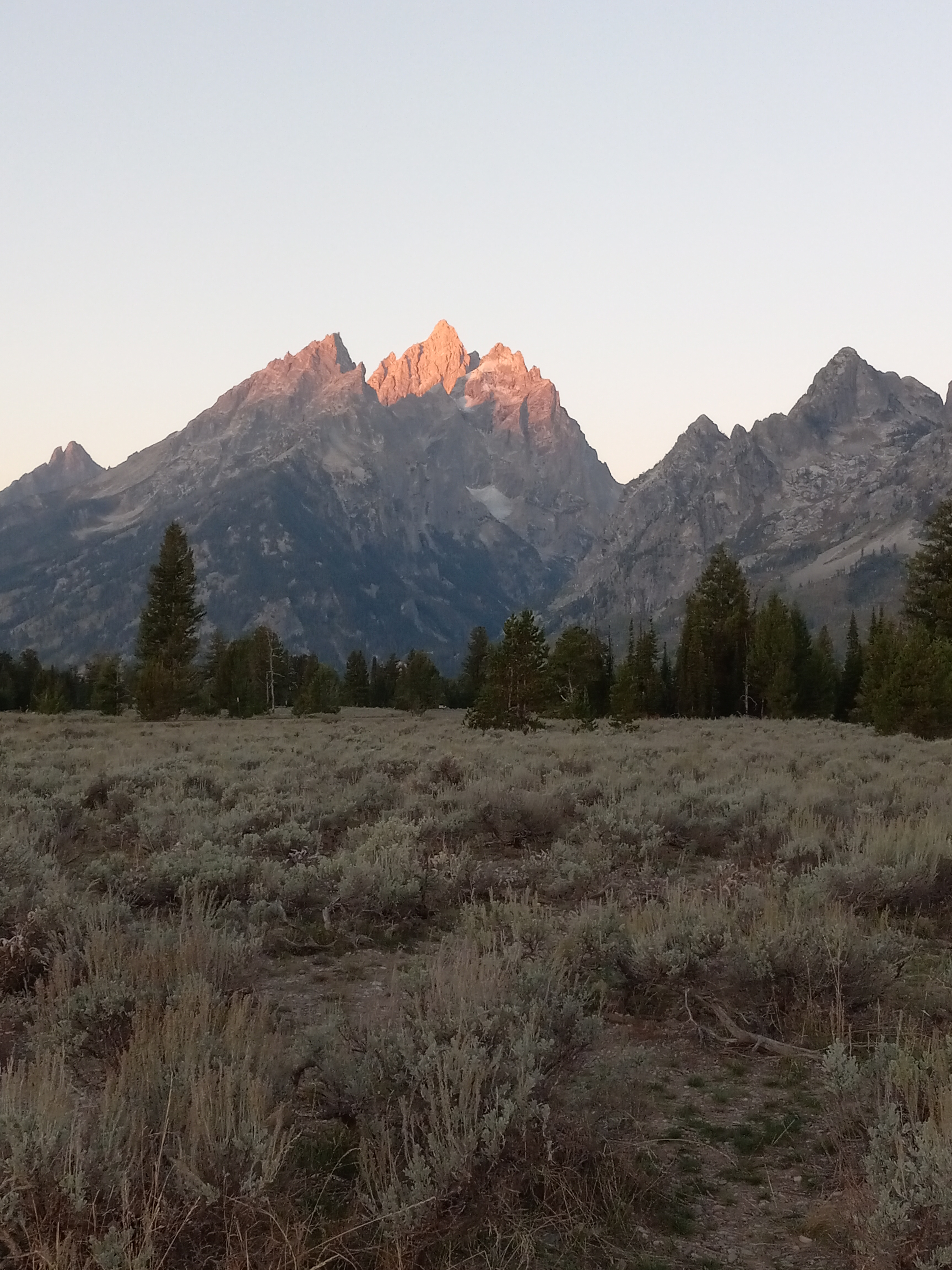 At three o’clock in the morning, I started the car and turned on the heat. A few hours later, I started to drive towards the Grand Tetons, figuring I’d try to be there by sunrise. I got on the 191 and headed south, only the faintest ripples of light now appearing on the Snake River, which ran beside the road. There were still a few stars left in the sky. Most of them had dimmed considerably.