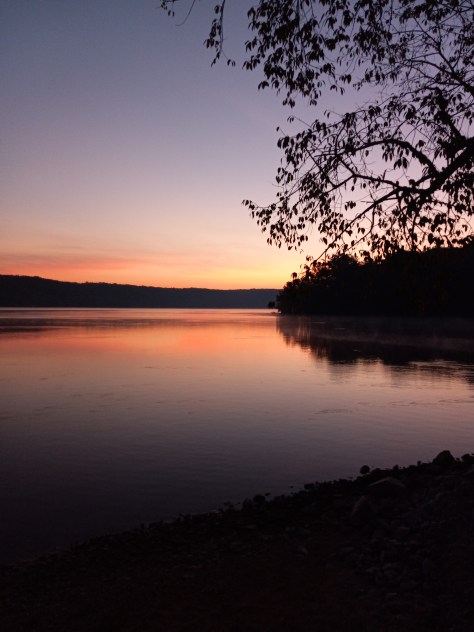 Although I was at Lake of the Ozarks, I still hadn’t seen much of the lake. I did a search for the National Park and was directed to the McCubbin’s Point Entrance. I reached the shoreline just as the sun was beginning to rise. The surface of the water was absolutely calm, with touches of pink, purple, and blue, framed by the silhouette of branches. It could’ve been a lake of magma, the very evolution of the earth taking place. The chirping of the bird was nearly deafening.