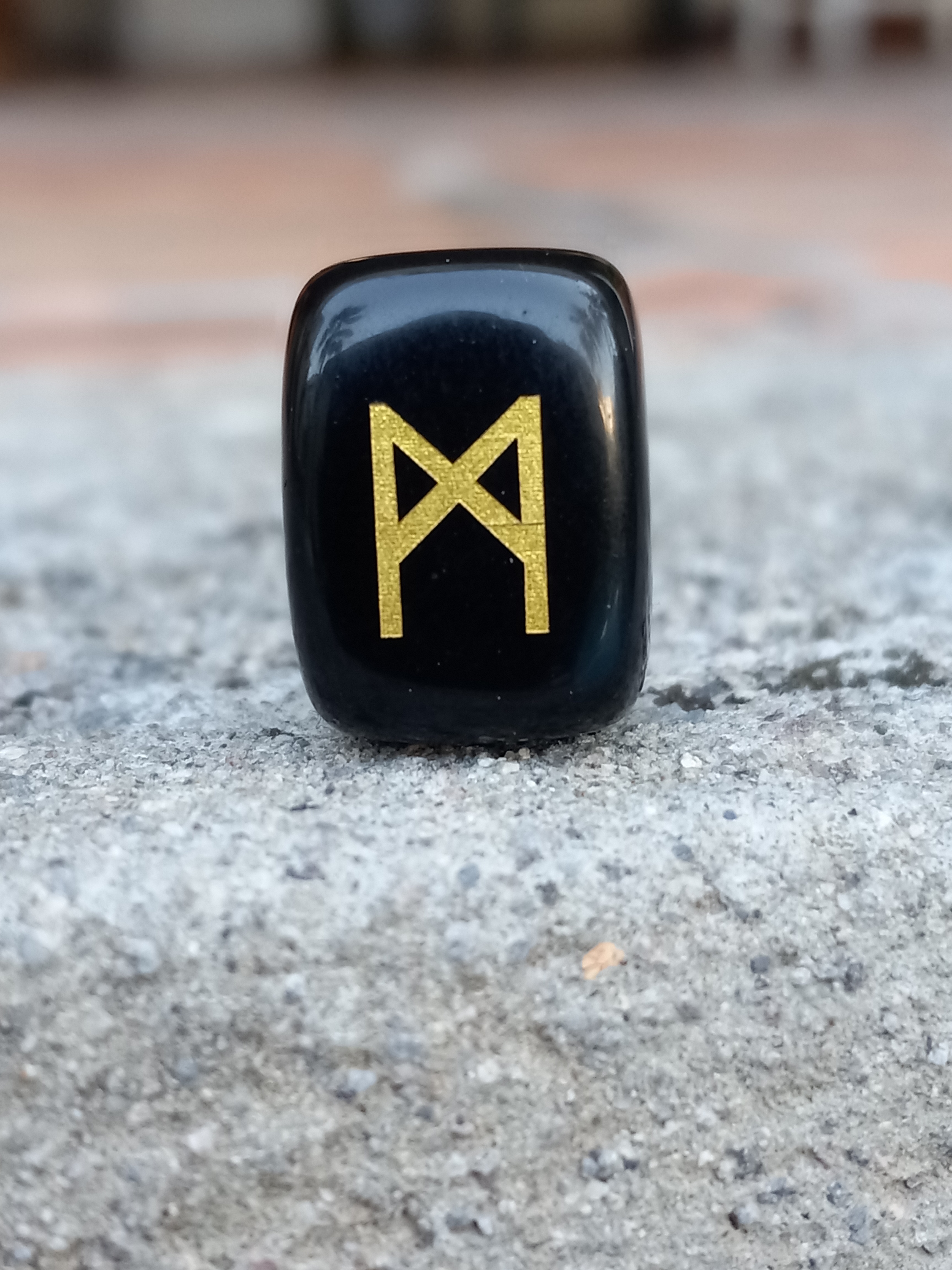 Mannaz looks similar to an M, but instead of the top lines meeting they cross to the other side. It stands for mankind, just like Ansuz stands for the gods and divinity. Although this may imply that it speaks for the universal brotherhood of man, the message of it is more direct and personal. It appeals to the conscience. One needs to question their own motives. How does one’s actions affect others? As a mortal it is impossible to be perfect. It is important to remember this. Be aware of your flaws but don’t let them stop you,