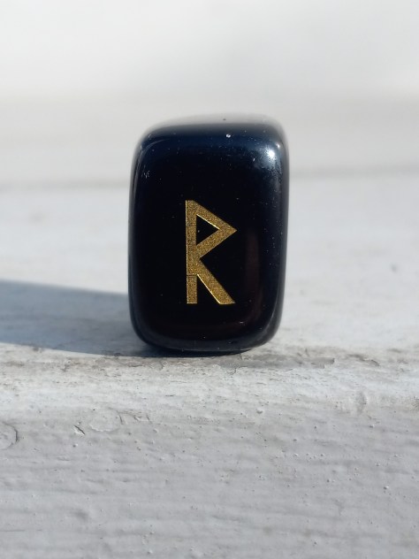Raido looks like a capital R. It is the rune of time, or a ride or journey. Its month is April and its moon is the Cuckoo Moon. It may be a rough ride or difficult journey, but will be worth it in the end. The benefits will be both material and spiritual, and admiration may be earned as well. If things are not moving as expected, the delay will be slight. If you draw this rune, you are heading in the right direction. Patience may be required, but the results will prove the value of the exploration.