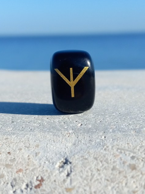 Algiz looks like one branch becoming three, or a stick with its arms raised. It is the rune of self-interest and is connected with magical power. It was once worn as a charm by those seeking protection and health. There is a difference between self-interest and selfishness. Drawing this stone means that you need to take the time to set your own house in order before you can be of service to anyone else. This may be due to illness or exhaustion. Other people’s concerns need to be put on the back burner for the time being. This is the time to take care of yourself, develop a new hobby, or pursue your own brand of enlightenment.