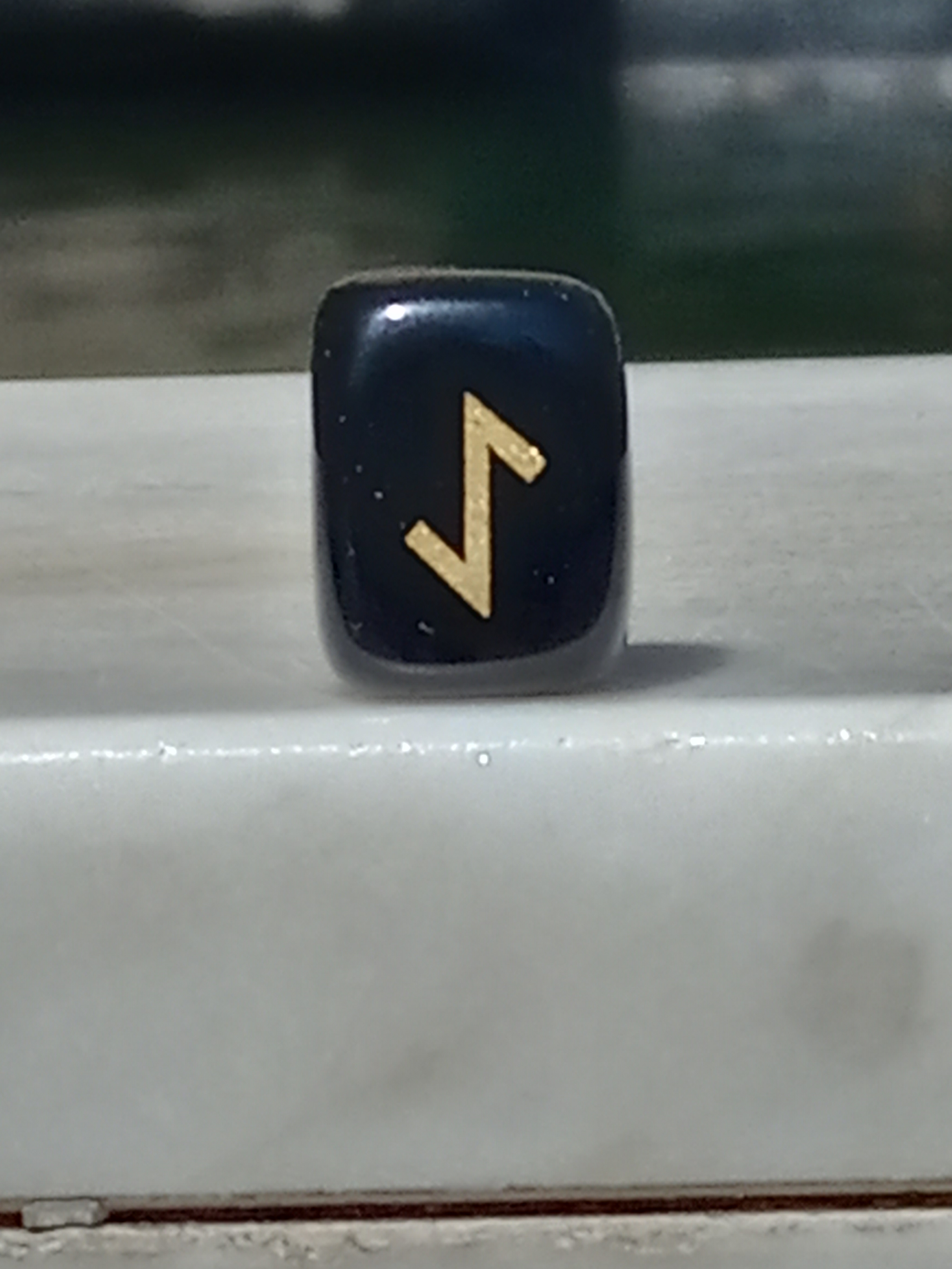 Eihwaz looks a little bit like a tilted inverted Z. It represents progress and is meant to represent a bow. It is related to Ullr, the Norse god of hunting who lives alone in a valley of yew trees. Some see him as the dark aspect of Odin. Drawing this stone, means that you are on the right track. Some patience is required, because things may seem to be moving too slow. You need to be like an archer and wait until the target is within range before taking your shot. It is the right time to gather your courage and take a risk.