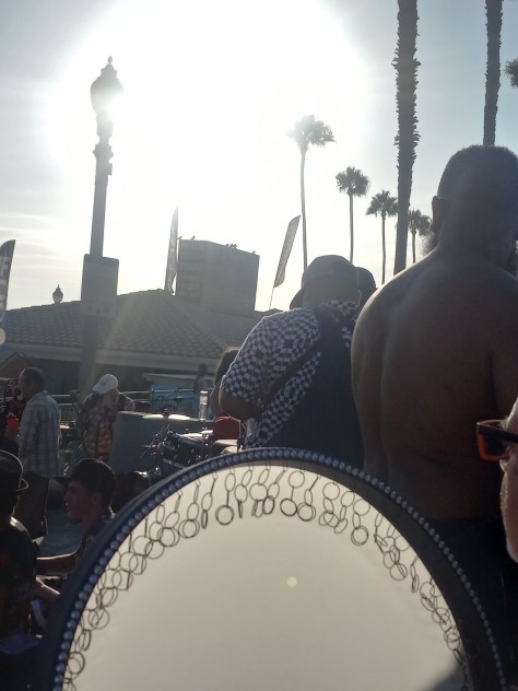 There was too much rhythm and too little beat, so everything felt off and disjointed. I began to feel very alone, so got on the Cruiser as the sun was setting over the sea, and headed north on the bike trail. At the Dog Beach I ran into Ezra, the dark prophet of the Gallows surf crew. He was hunched over the railing, glaring into the sunset, the whiskers spouting from his face, which was drawn up like a shrunken apple. He was contemplating the end of the world as he’d been known to do.