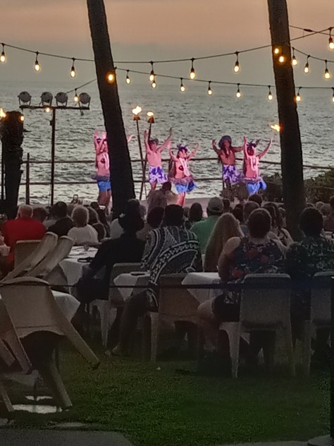 I returned to Honi Park for the sundown then started walking towards some music that was coming from the Royal Kona Resort. They were in the midst of having a luau. A luau is a Hawaiian tradition that goes back hundreds of years. It is a feast meant to commemorate either a special occasion or one of the gods. Women weren’t allowed to eat with the men until 1819, when Kamehameha II invited them to join. A luau is traditionally eaten sitting on mats or leaves. Often the food was eaten with the hands.