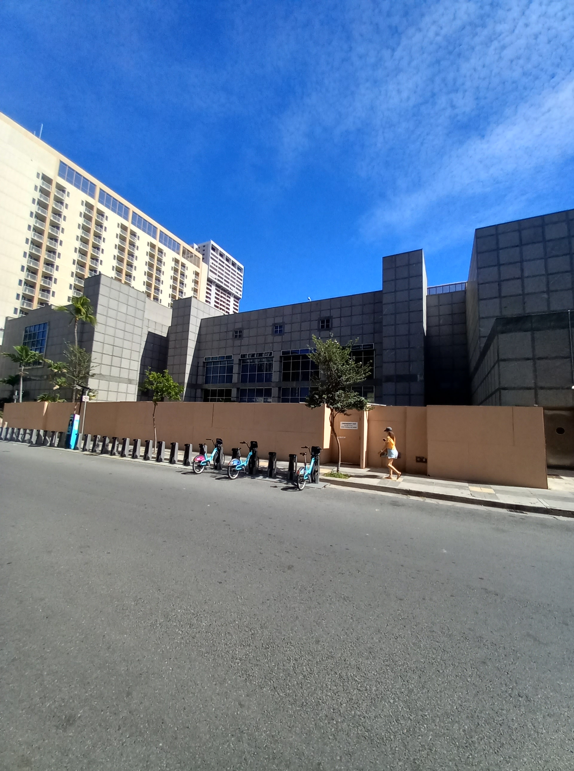 After lunch, I rode along the Ala Wai Canal, in search of Lewers Street, where Our Redeemer Church had once been located. In my mind, what I imagined was a skyscraper, tall enough for the crosswinds to go rushing through the top floors and make a ghostly wail in the stairwells. Once I arrived, however, I discovered that the old building had been torn down, and all that remained was a squat, black one-story fortress, a heiau to capitalism.