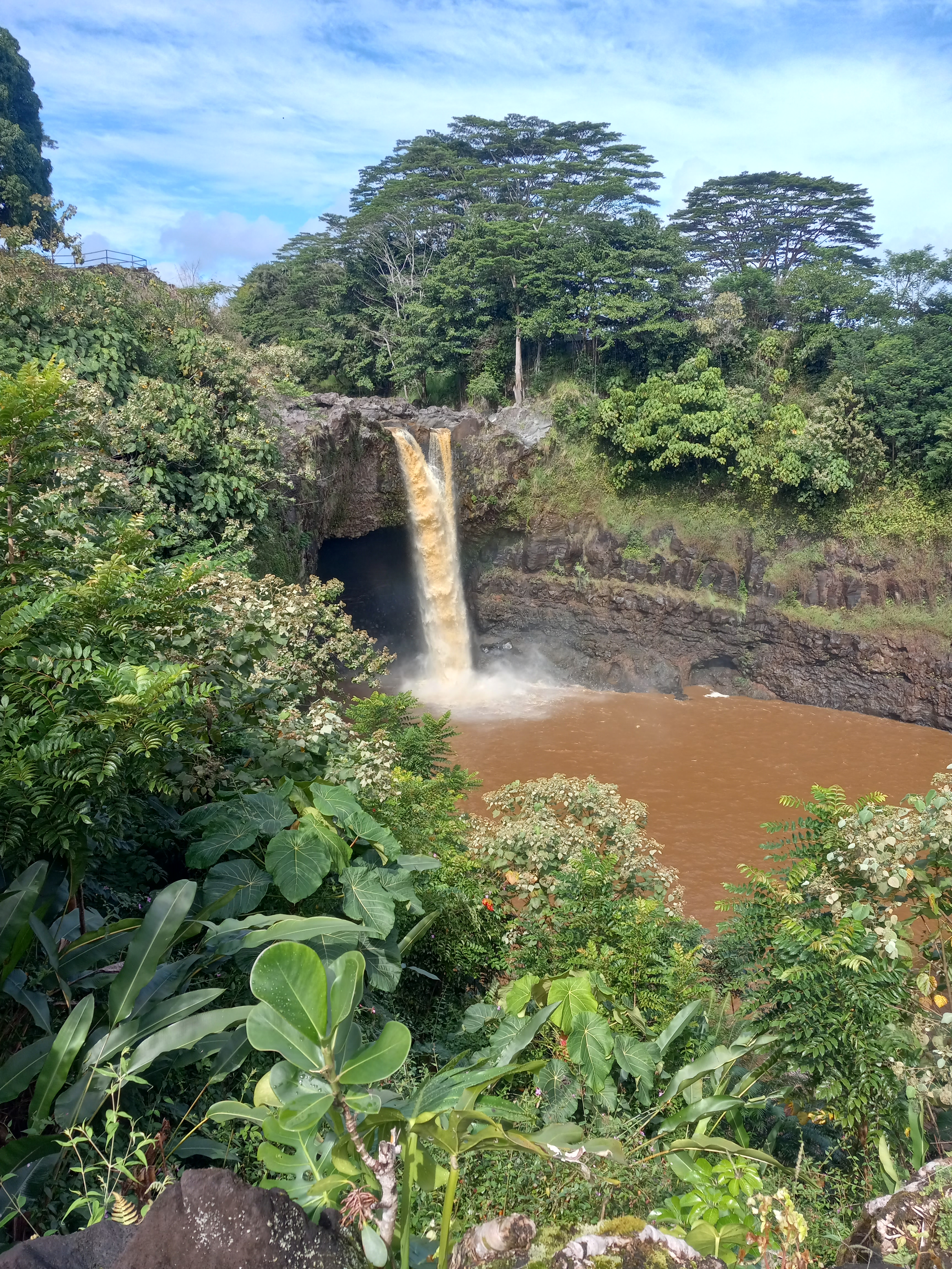 On this day I needed to go for a hike. There were two waterfalls I knew about that were in close proximity. I’d been to Akaka Falls the last time I was in Hilo, a four-hundred-foot drop with a wooden walkway. It might be one of the most scenic falls in the world, but was also over ten miles away. Rainbow Falls was closer. It is eighty feet and wonderful in its own way, especially when the conditions are right and rainbows appear above the basin. It was not hard to walk there, so I strapped my ukelele to my back and set off.