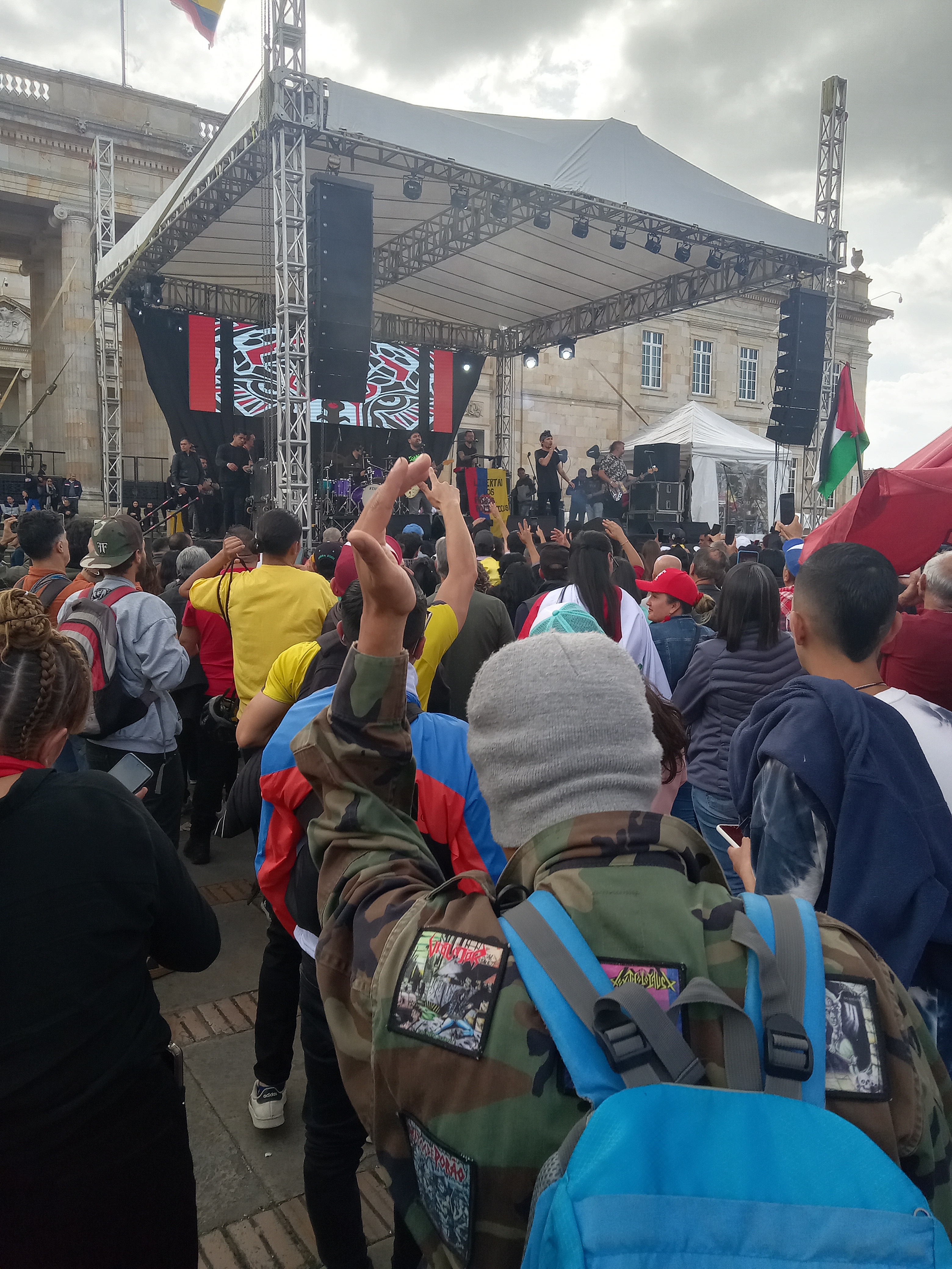When I got back to the Plaza de Bolivar the concert had started. That was more in line with my restless mood, but I really just wanted to go. The rally seemed to be in support of their president, Gustavo Petro, as a big-headed replica of him was making the rounds, giving hugs, and posing for pictures. I never found out the name of the band, but they must’ve been successful on some level, as everyone in the crowd seemed to know the words to all their songs. One old man behind me began clanging on a cowbell so enthusiastically I nearly went deaf.