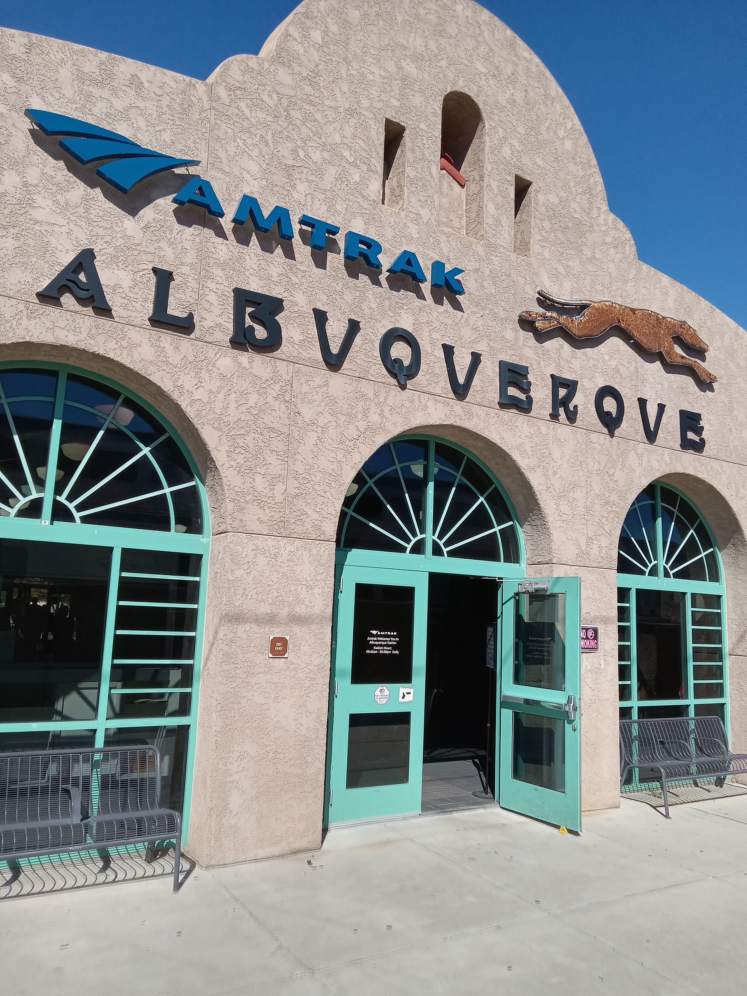Around eight, I went to get a cup of coffee at the café and sat drinking it in the observation car as we pulled into Gallup, New Mexico. I’d been through Gallup the year before and recognized some of the Zuni trading posts. Waiting to board the train was a young guy in a blue suit jacket and black sunglasses, looking like he was on his way to audition for a Blues Brothers cover band. The train was heading to Chicago, after all. When I went to my seat to grab my charger, I saw he’d been given the seat next to mine.
